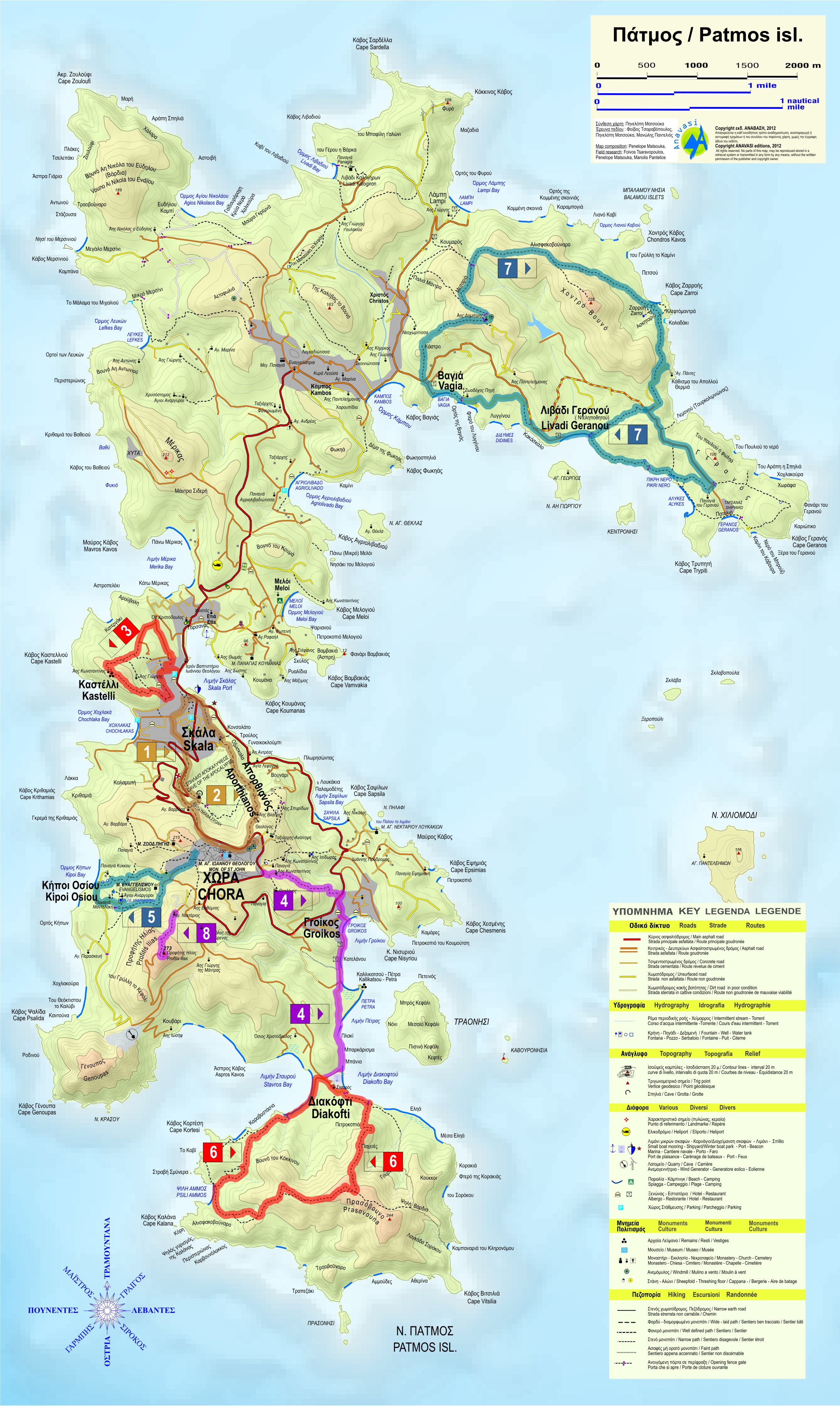 Το λιμάνι της Πάτμου η Σκάλα είναι χτισμένη στο βάθος του κόλπου και συγκεντρώνει το μεγαλύτερο μέρος του τουρισμού. Η Χώρα που είναι η πρωτεύουσα του νησιού αποτελείτε από όλα εκείνα τα στοιχεία που αναγνωρίζονται από όλο τον κόσμο ως παραδοσιακά νησιώτικα ελληνικά.